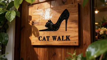 街道上巨大猫粮,里面和周围装满并环绕各类可爱商品(猫咪玩具),周围有漂浮的商品与小装饰元素,背景是商场购物街