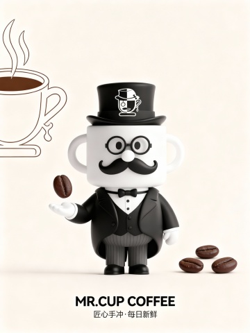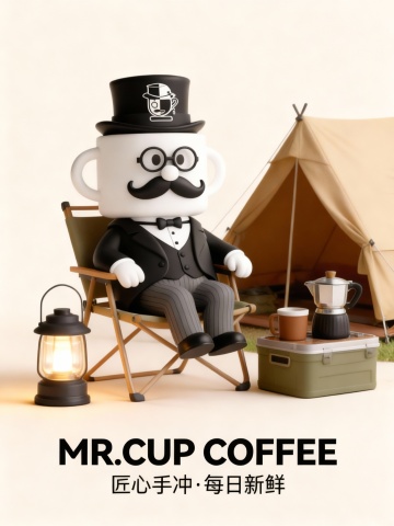 请执行以下IP形象咖啡主题海报设计任务: 配上标题和文字 1. 设计要求:保持IP形象的主体特征和细节不变,仅改变其姿势,生成三张不同风格的咖啡主题海报。 2. 风格差异化:确保三张海报分别呈现出明显不同的视觉风格(例如:简约现代风、复古手绘风、活力潮流风等)。 3. 姿势设计:为每张海报设计一个与咖啡主题高度相关的独特姿势(例如:品鉴咖啡、制作咖啡、与咖啡杯互动等)。 4. 场景元素:每张海报应包含与所选风格匹配的咖啡相关场景元素,强化主题氛围。