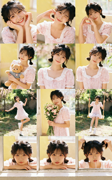 胶片风与东亚美学交融,粉嫩碎花裙搭配柔和光影,展现甜美可爱与文艺浪漫的清新日常,窗边、花丛、秋千间尽显温柔治愈的春日诗意。