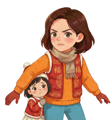 Q版马年动漫IP形象设计,可爱的拟人化小马宝宝,有着蓬松柔软的毛发,圆圆的脸,开心的笑容,可爱的歪着头看着镜头微笑,穿着春节服饰,手上拿着有春节元素的物品,背景为单色红色,整体风格是卡通可爱的插画风,画面高清,细节丰富