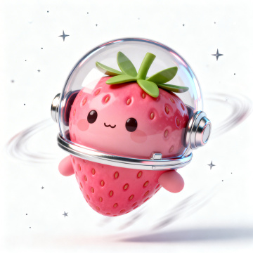 一套四个不同的卡通风格3D食物图标,包括胡萝卜、草莓、香蕉和苹果,每个都有光滑圆润的表面、柔和的渐变色彩、简洁的线条和Q版造型,统一采用纯色背景,整体色彩明快鲜艳,元素类目保持一致,规整地排列成系列素材集合。