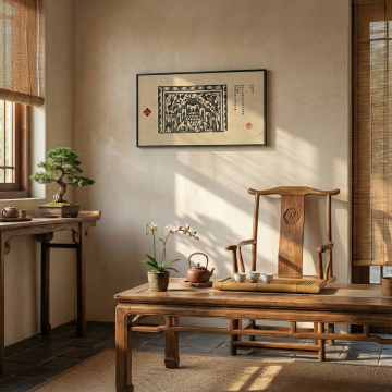 换成三张符合国潮醒狮摆件的背景,比如家居、茶室