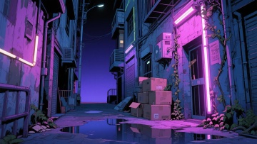 二次元日漫,街道城市,氛围魅惑、深紫色,不要人物,细节丰富,16:9,生成二张