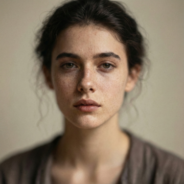 超近特写镜头,聚焦年轻女性的半张面部,细腻展现健康自然的皮肤质感,肌肤呈现出通透的米杏色基调,带有自然的浅棕色雀斑和细微的皮肤纹理,显得真实而有生命力。柔和的自然光从侧上方照射,在眼睑、颧骨和鼻梁处形成细腻的高光,光影过渡自然,立体感强。女性双眼轻闭,长而密的睫毛自然垂下,眉毛呈自然的棕色,形状柔和。唇部微张,唇色为自然的淡粉色,水润饱满。金色的发丝柔软地垂落在脸颊旁,整体氛围宁静、纯净,充满高级感。画面构图简洁,突出皮肤的自然状态和细腻质感,色调温暖柔和,光影运用精妙,展现出皮肤的健康光泽与自然肌理。