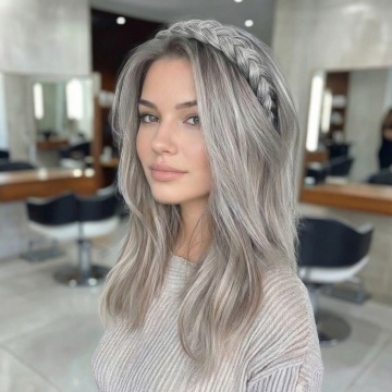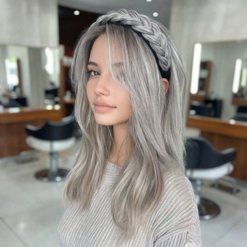 一张高清晰度的头发素材图片,纯白色背景,主体是一款精心设计的发型,发型蓬松饱满,发丝呈现出柔和的渐变色彩,从顶部的深棕色逐渐过渡到发尾的浅金色,发丝纹理清晰可见,具有细腻的光泽感和真实的质感,整体造型时尚优雅,没有面部,仅展示头发部分,适合作为设计素材使用。