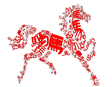 国潮风马年贺图,几何线条勾勒骏马轮廓,红底噪点肌理增强质感,融合中式纹样与灯笼元素,喜庆祥瑞。