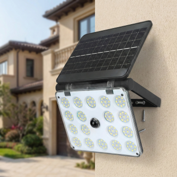 焦点在壁灯上,把这个产品安装在墙上,远景是模糊的别墅,白天状态 产品需要很清晰