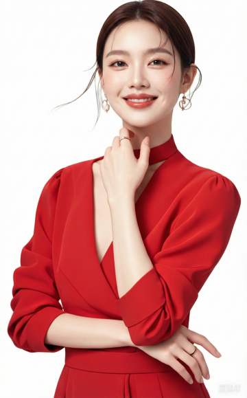 红色西装新年抱胸形象照