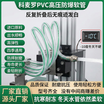 这张图片是产品主体这款产品是科麦罗PVC高压防爆软管 我需要设计10张主图在拼多多上面售卖 主图产品不变 可以用 水管洗车 等场景进行主图场景布局设计一个高级一些主图文案内容 进口原料 出水顺畅 高弹性 四季通用 -10度冬天不硬 防摔耐磨 寿命更长 柔韧耐折 反复折不留痕不发白 高压防爆 品质保证 耐磨抗压 使用轻松方便 厂家直销 型号齐全 没有中间商赚差价 源头厂家 抗寒耐冻 冬天水管 依然柔软