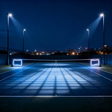 请帮我生成一张匹克球运动的场地 ,整体色调暗色