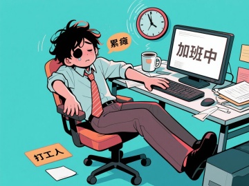 卡通感插画风,展现职场压力,简洁线条与柔和色彩,幽默表达工作烦恼。