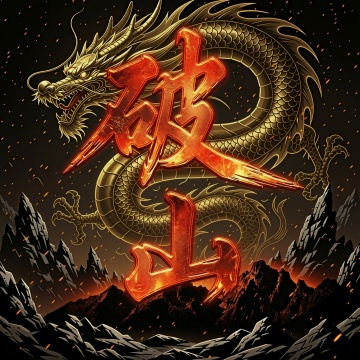 插画风国潮设计,鎏金龙纹盾牌,火焰环绕,尽显神圣与威严。