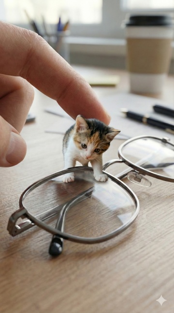 A macro photography shot of an impossibly tiny, fluffy Ragdoll kitten sitting comfortably on the tip of a human thumb. The kitten is about the size of a marble, with striking blue eyes and soft white-grey fur. Every strand of fur is visible. The human thumb has realistic skin texture and fingerprints. Natural soft sunlight from a window, beautiful bokeh background of a cozy living room. Hyper-realistic, 8k resolution, cinematic lighting, highly detailed textures.