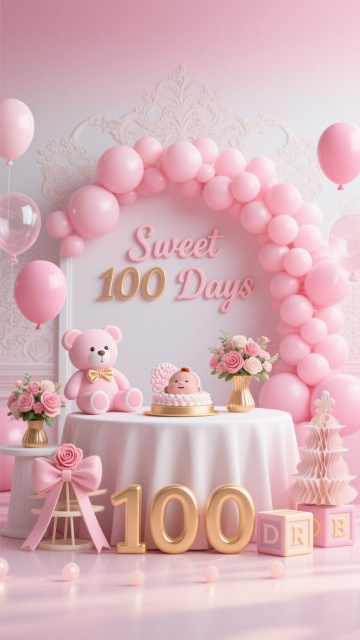 百天宝宝粉色布置 温馨场景