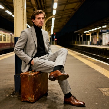 生成5张图片,内容为欧洲帅哥穿着西装皮鞋,休闲图片,鞋子要完全展现出来,长宽比1:1