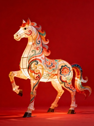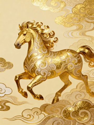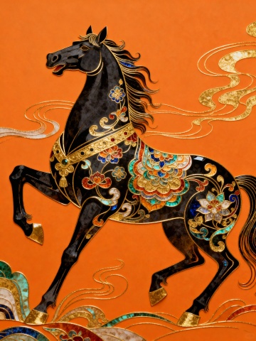 工笔与岩彩交融,鎏金勾勒骏马华纹,融合中式民族元素,喜庆祥瑞,尽显复古雅致。