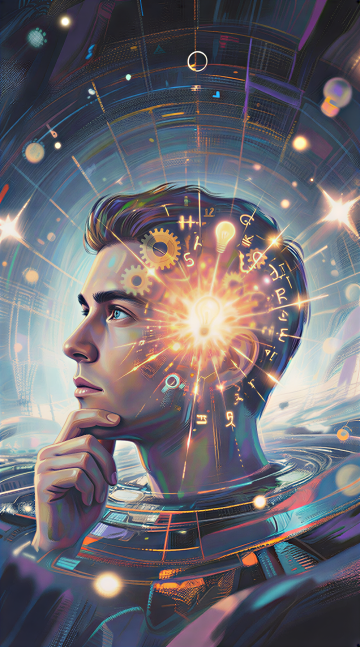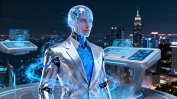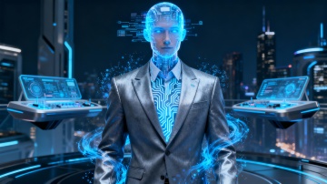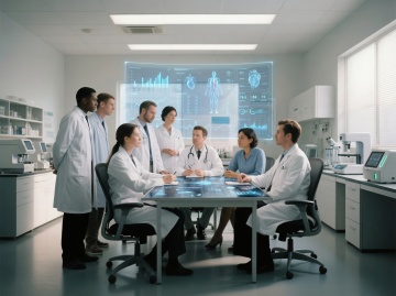 “竖版海报,科技感未来风,深邃宇宙星空背景(带星点、光晕);画面中心是发光的粒子化大脑(蓝紫色渐变,带科技纹理),大脑下方有蓝色光束流向地面的全息投影台;投影台旁是 3 位白大褂医生(背对视角,围坐操作电子设备);两侧是悬浮的数字化界面(含数据图表、代码窗口);整体色调以深蓝、暗紫为主,光影炫酷,质感细腻,细节清晰,呈现高端科技会议海报效果。”