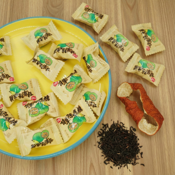 背景换成木纹,盘子旁边放上一些茶叶和一些陈皮