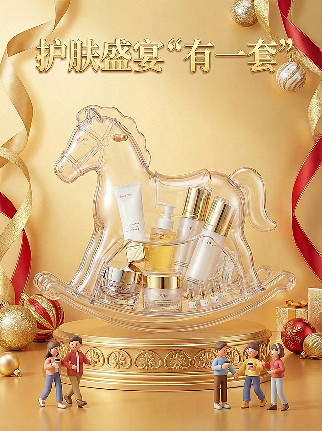 软3D风拟人小马手持护肤瓶,毛发生长质感细腻,温馨圣诞场景搭配面料感毛衣,甜蜜可爱中透出喜庆节日氛围。详情