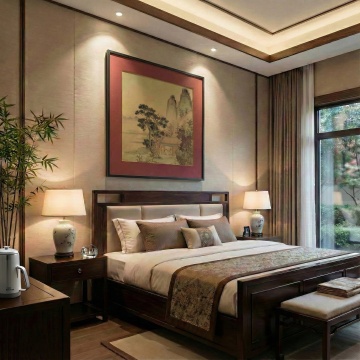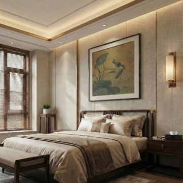 保留墙上的挂画,换一个新的现代中式雅致茶室的场景挂上去,画质清晰,光影效果