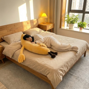 极简风格卧室室内设计,以浅米色墙面为背景,搭配原木色实木床架,铺着浅灰色亚麻质感床单,床头摆放两个浅米色方形靠枕和两个浅灰色长条形枕,床尾随意搭着一条米白色针织毯。床的左侧是原木色床头柜,上面放置一个白色陶瓷小花瓶,插着几根干枝,旁边有一个白色小茶杯和托盘。床头柜上方墙面挂着一幅极简风格装饰画,画框为原木色,画面是三束黑色线条勾勒的麦穗图案。床的右侧是一盏白色金属落地灯,灯罩为米白色布艺材质。床前浅色木地板上铺设一块米白色长方形棉麻地毯,地毯上放着一个圆形编织篮,篮子里有一本翻开的书。整体色调以米色、浅灰、原木色为主,光线柔和,营造出宁静、舒适、简洁的氛围,空间布局对称平衡,线条干净利落,无多余装饰,体现极致的简约美学。