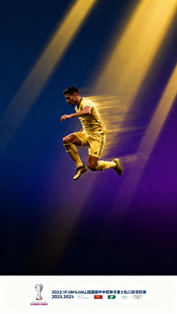 一张展现足球运动员动态瞬间的高质量摄影风格海报,画面中央是身着红色运动服的足球运动员正全力踢向足球的特写镜头,运动员姿态舒展充满力量感,足球上的黑白纹路清晰可见,绿色的足球场上草叶细节丰富。背景是夕阳西下时分的天空,橙黄色的阳光洒在整个场景上,形成温暖而富有戏剧性的光影效果,远处有模糊的其他球员和看台轮廓,天空中点缀着少量白色云朵。整体画面采用三分法构图,主体突出,色彩以红、绿、橙黄为主色调,光影对比强烈,高光和阴影细节丰富,营造出充满活力、激情四射的运动氛围,具有极强的视觉冲击力和信息传达效率,符合体育赛事宣传海报的设计感和目标受众审美。