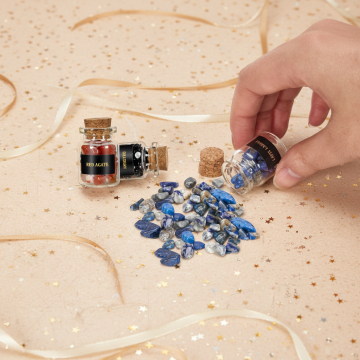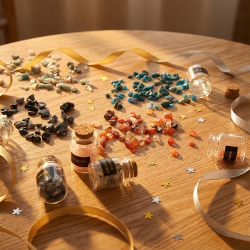 阳光下,造型各异的彩色水晶簇与原石散落在深蓝色天鹅绒布上,水晶棱角分明,折射出耀眼光芒,呈现出透明、紫色、绿色、橙色等多种色彩,表面光滑有光泽,背景为纯净的深蓝色,水晶底部有细微的阴影,整体画面色彩鲜明,光影效果突出,具有高清晰度和细腻质感。