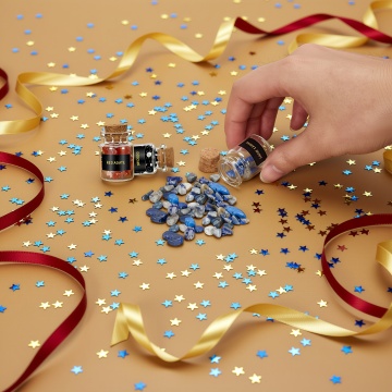 桌面换成浅黄色桌布,上面撒了点碎星星或者有丝带得点缀这样,主体还是展示参考图中的产品。