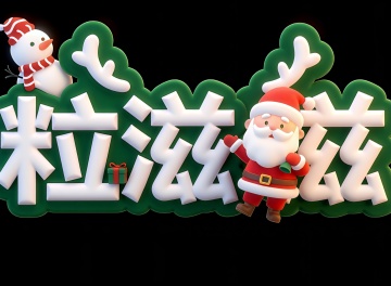 梦幻冬夜,毛发生长风字体搭配粒子雪花,3D软萌质感,营造温馨可爱的圣诞氛围。