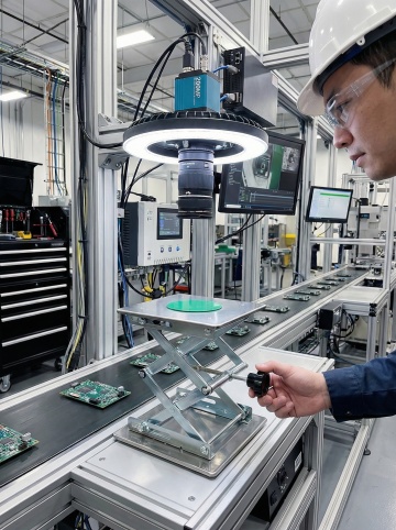 一位男性技术人员正在不同的工业工作场景中进行设备检查与操作,他头戴黄色安全帽,帽前配有照明头灯,身穿深蓝色工装制服与橙色反光安全背心,戴着护目镜和红色耳塞,正专注地手持平板电脑或检测仪器,观察着面前复杂的电气控制柜与密集的彩色线路。场景采用写实风格的职业摄影,光线呈现出工业环境中特有的局部照明效果,主色调为深蓝、深绿与橙色的对比搭配,画面具有清晰的景深和丰富的细节质感,展现出专业、严谨且略带紧张专注的工作氛围,构图突出人物与设备的互动,背景可替换为工厂车间、机房、维修站等不同的工业工作场景,整体传递出技术人员在真实工作环境中认真负责的职业形象。