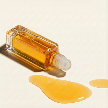 清新玻璃瓶置于虚拟自然水景中,花影轻舞,尽显清爽与清透感。