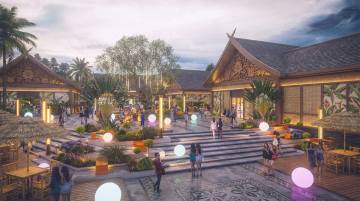 高端酒店外观夜景,现代简约建筑风格,主体为高耸的米灰色玻璃幕墙大楼,顶部及裙楼边缘有温暖的金黄色灯带勾勒轮廓,大量明亮的窗户透出内部灯光。建筑前方有平静的水池,完美倒映出建筑的灯光与轮廓,水面泛着金色涟漪。周围点缀着茂密的绿色树木,底层设有带遮阳伞的露天休息区。天空呈现深邃的蓝紫色渐变色,营造出宁静、奢华、大气的氛围,专业摄影级画质,清晰的细节和光影层次,高分辨率。