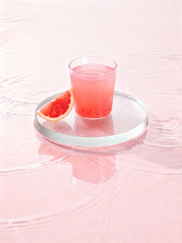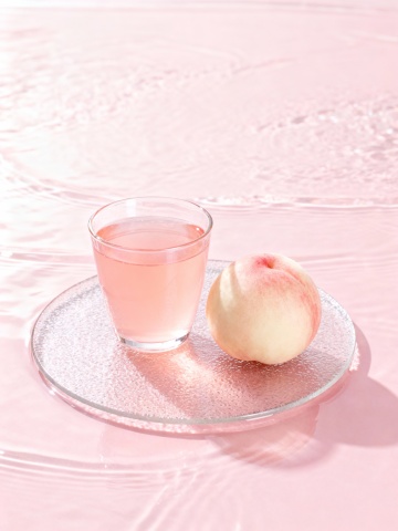 生成一个简约清新的水果茶展示背景,水面之上中央有磨砂玻璃圆形底座,果茶在底座之上,搭配一个新鲜的水果作为展示,水果要配合果茶的口味而变化;清新的颜色,给人一种新鲜水果的感觉,分别生成适合百香果果茶,白桃果茶,草莓果茶,葡萄果茶,西柚果茶的场景图各一张。图片尺寸是3543X4724像素。