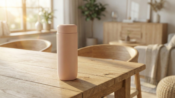 清新自然的户外场景中,四款简约金属质感保温杯以性冷淡风与轻拟物设计呈现,柔和色调搭配实景光影,传递舒适与高级感。