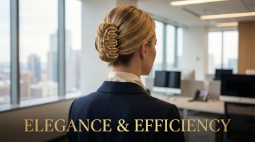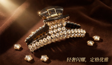 以图中的金属爪夹发饰为元素,欧美女人后脑勺盘发,物体主体特征不变,设计4张跟金属爪夹发饰有关的广告图,比例 「1:1」