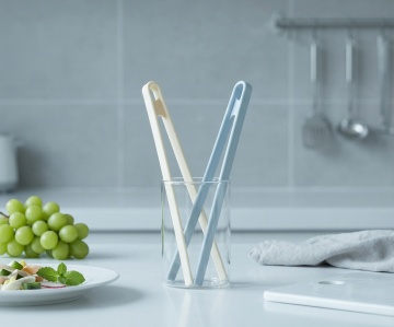 清新简约厨房场景,轻拟物风厨具搭配玻璃杯,柔和色调营造清爽舒适感,性冷淡风设计呼应现代生活美学。