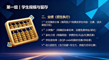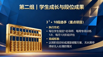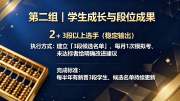 2026年目标 1. 80个3段以上选手 2. 10个10段选手 3. 精英组、全国组每组 3 人打满分 4. 豆苗横扫一半组别的最强王者 5. 神墨10个冠军 6. 薪火10个冠军 7. 2位可以培训学生参赛的教练 8. 2位教基础班的达人 9. 在 2026 年 12 月,马来西亚学生人数 1,400 人 依据我给你的文字生成,排版要正中,算盘要金色