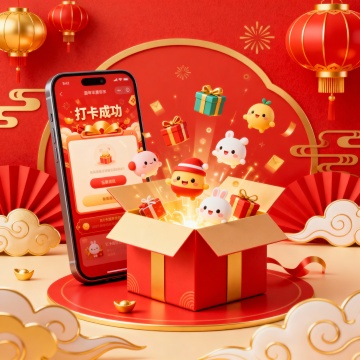喜庆感十足的3D风海报,大字“福利抢先购”采用软3D与塑料质感结合,鎏金元素点缀,红包礼盒环绕,营造节日狂欢氛围。