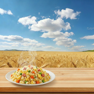 炒饭 红色完整盘子装盘 平视效果图PNG
