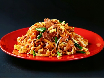 顶视角度,一碗黑色的碗里装着飘香的牛肉面,面条根根分明,汤色浓郁,上面撒着鲜红的辣椒和翠绿的葱花,热气腾腾,散发着诱人的香气,画面清晰,色彩鲜艳,细节丰富