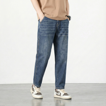 裤脚平整锁边不卷边,标准长度刚好到脚踝,无翻边无卷边设计,做工精细,双线车缝 不能改变模特性别和动作 场景:灰色地面与白色背景,光线自然,背景简洁 画质要求:写实,8k,高细节,对焦清晰,光线自然,无变形