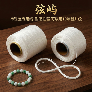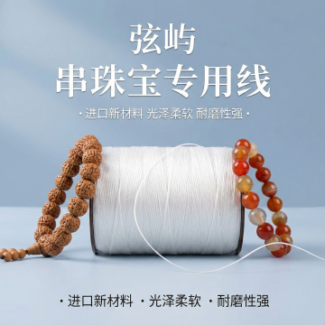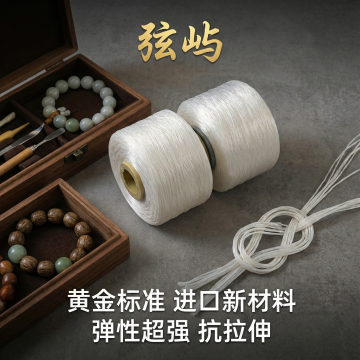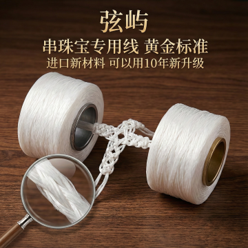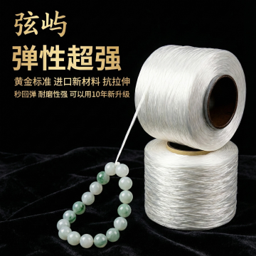 这张图片是产品主体这款产品是手串弹力绳 品牌名 弦屿 我需要设计20张主图在拼多多上面售卖 主图场景布局能用到的多场景元素布局显得高级一些 产品文案可以写:串珠宝专用线 黄金标准,进口新材料 光泽柔软 弹性超强 抗拉伸 秒回弹 耐磨性强 可以用10年新升级 工厂直销 尺寸齐全 文玩弹力绳