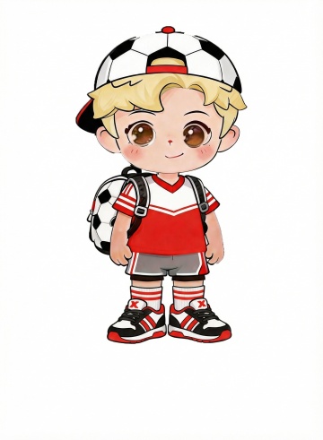 卡通感与扁平风结合,动漫风格人物踢球瞬间,简约主义线条勾勒动感姿态,轻拟物设计增强视觉冲击,无节日信息。