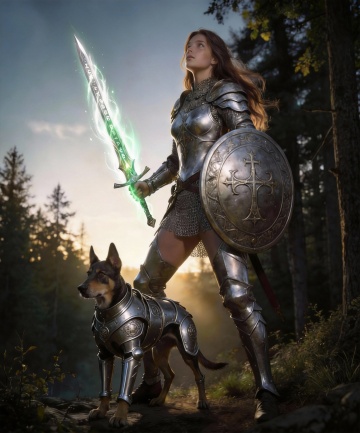 3D风拟人狼战士,毛发旺盛,手持巨斧,超现实主义风格,森林中散发神秘感。