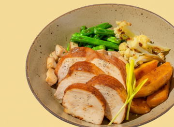 一张精心布置的餐桌,桌上摆放着各种美食,有三文鱼、烤虾、沙拉、蔬菜、水果和饮品等,餐具精致,桌布素雅,旁边有白色的花瓶和盛开的白色花朵,整体呈现出温馨、自然、明亮的居家氛围,光线柔和,色彩清新淡雅,构图饱满,细节丰富,展现出舒适的用餐场景。