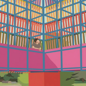 清新水彩风插画,描绘夏日街头的青春活力,色彩斑斓,充满生活气息。