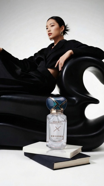 超大号唇釉装置,玻璃风与金属风结合,透明感与体积感并存,未来感十足的潮流场景,展现时尚与科技融合的现代美学。