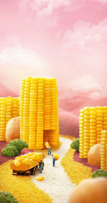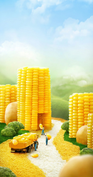 清透水珠滴落玉米,光影交错间尽显液态风与实景感,水彩般柔和的绿意背景,营造出清新唯美的自然意境。