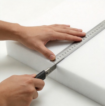 一张温馨的卧室场景,中央是一张铺着棕色床垫的床,床垫表面柔软舒适,带有自然的纹理。阳光透过窗户洒在床垫上,形成温暖的光斑。床头柜上摆放着一盏柔和的台灯和一盆绿色植物,整体色调温暖柔和,营造出舒适、放松的居家氛围。