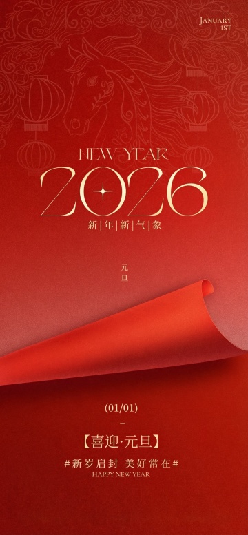 喜庆红金配色,3D大字“2026”鎏金边框,浮雕祥云环绕,烟花绽放,中式年味浓厚,新春贺岁氛围十足。